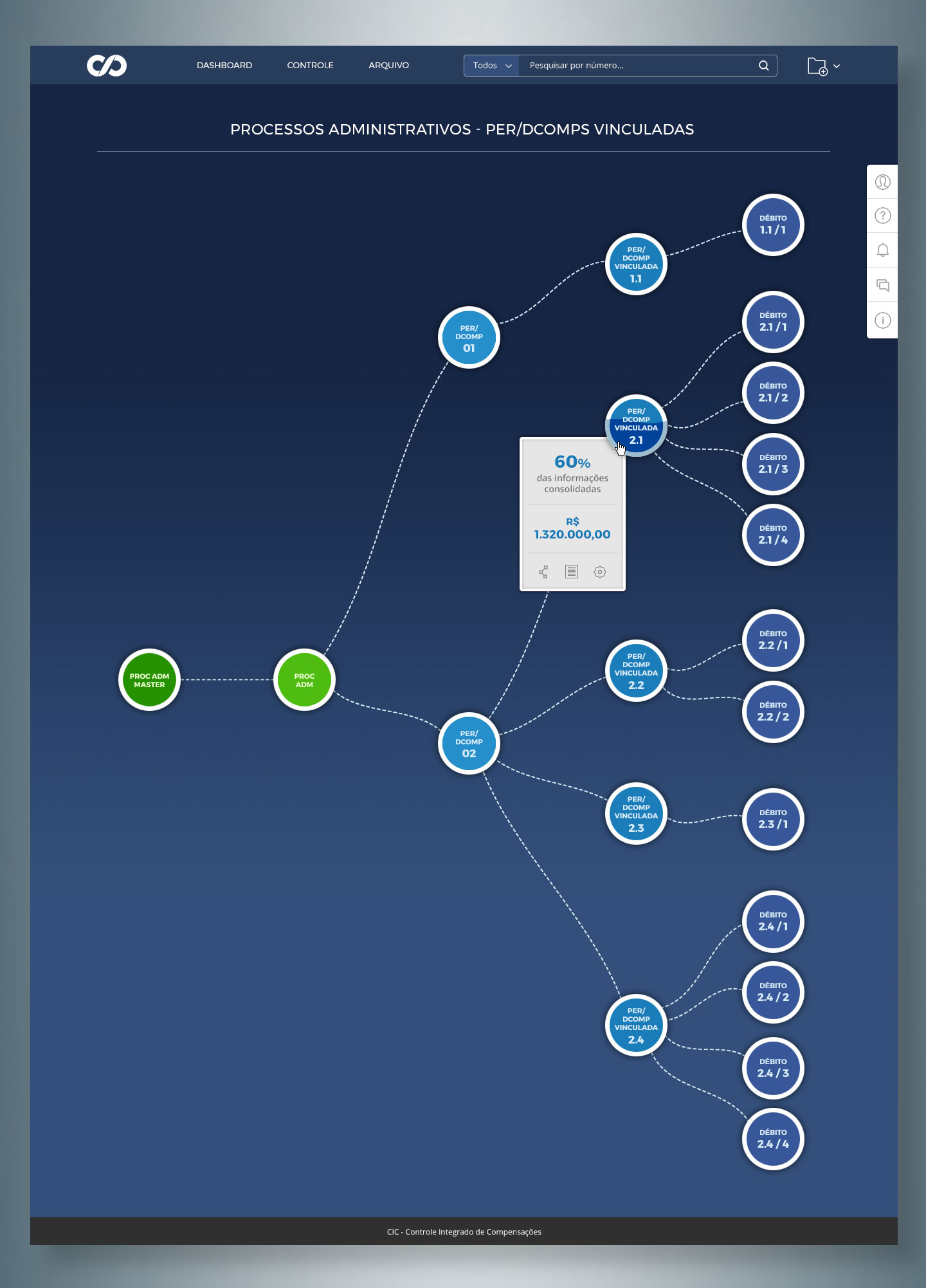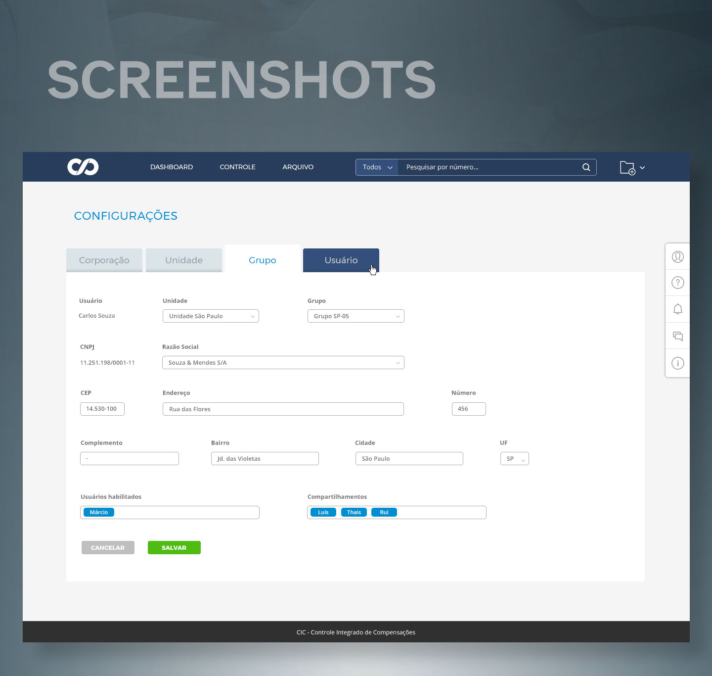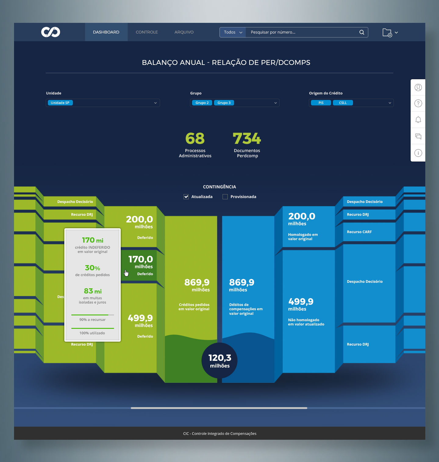Foi criada então uma marca que contempla as letras iniciais (CIC – Controle Inteligente de Compensações) em um formato que lembra o símbolo do infinito, a fim de mostrar a importância da alimentação de dados por parte do usuário.