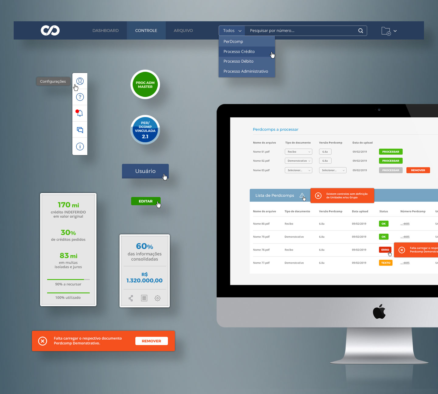 A ARX, empresa especializada em tecnologia da informação, precisava desenvolver um logotipo e também a interface gráfica para um sistema de compensações tributárias.