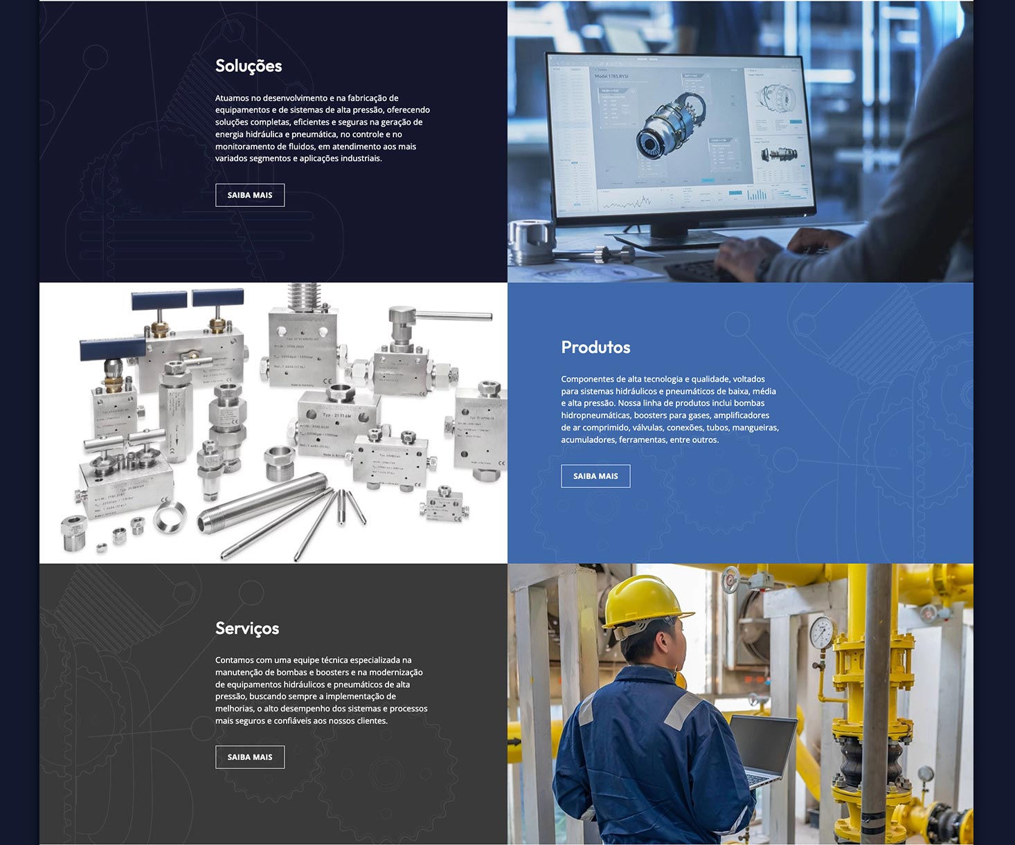Para o layout usei fotos grandes, seções contrastantes, desenhos técnicos de motores como elementos gráficos de apoio, navegabilidade direta, Call to Action em posições pré determinadas além do redesign completo da versão mobile.