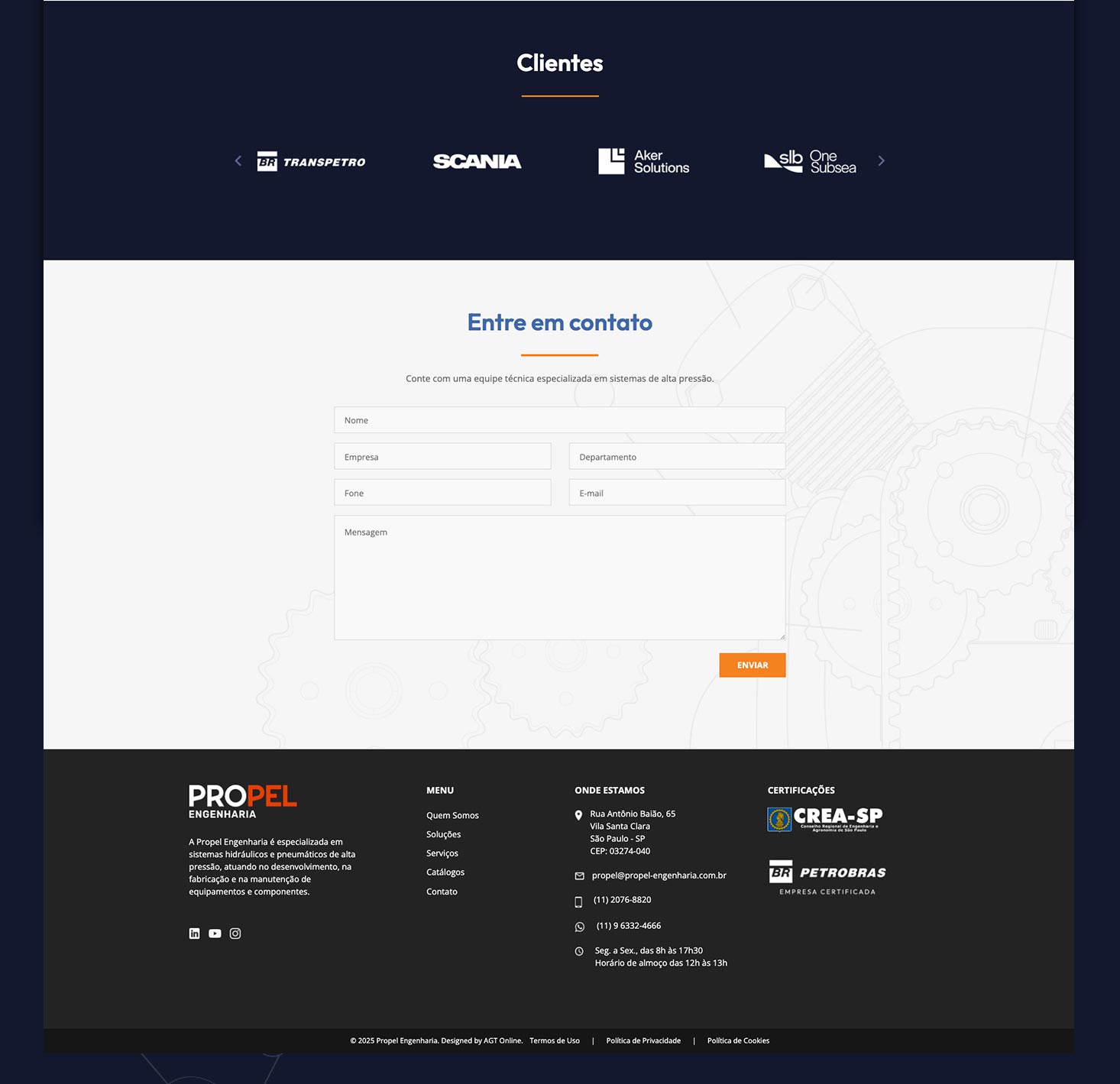 A Propel Engenharia é especializada na fabricação de sistemas hidráulicos e pneumáticos de alta pressão, atuando no mercado há mais de 30 anos.